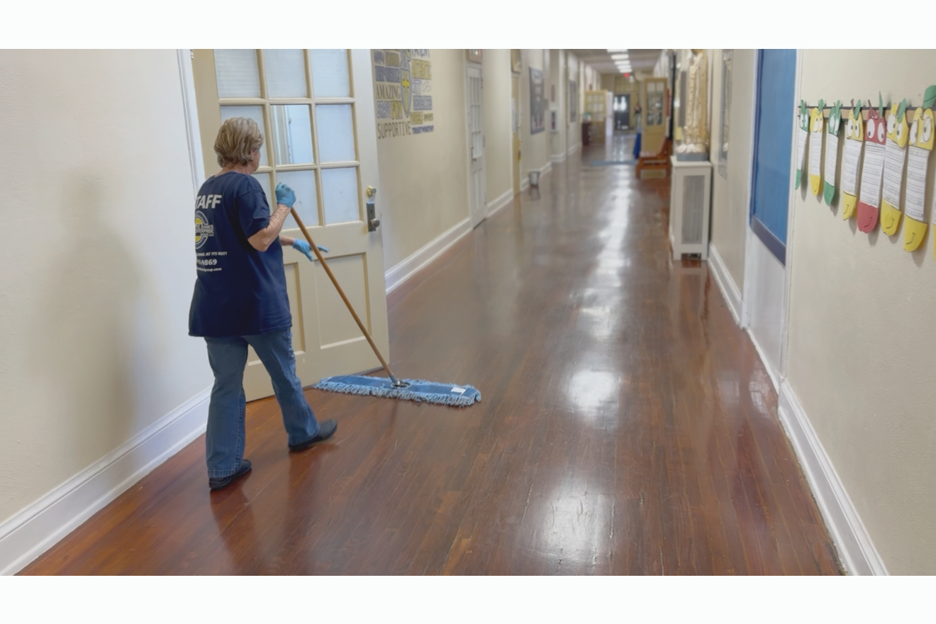 Deep carpet extraction, floor stripping, waxing, buffing, and rubber floor cleaning using professional-grade machines.